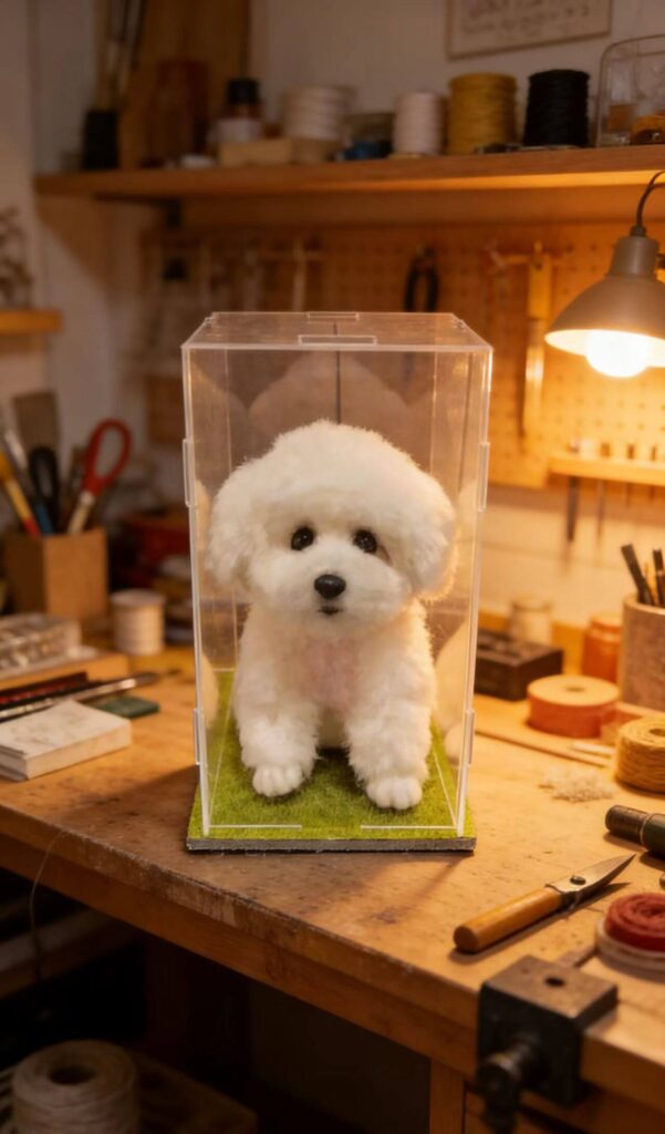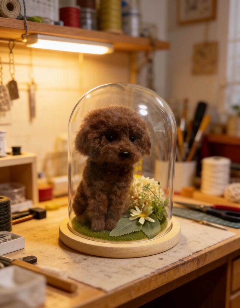 :This 3D plush of my standard poodle, Coco, is stunning! The portrait captured her curly, fluffy coat and dignified expression perfectly. The texture is soft and cuddly, just like her, and it sits proudly on my mantel. Every time I look at it, I feel like she’s still with me. The craftsmanship is amazing—this is more than a keepsake, it’s a piece of my heart
